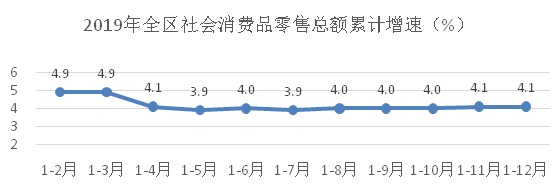 2019年,全區(qū)消費(fèi)品市場(chǎng)實(shí)現(xiàn)平穩(wěn)運(yùn)行,基本生活類(lèi)商品穩(wěn)步向好,升級(jí)類(lèi)商品保持增長(zhǎng),網(wǎng)上零售增速較快,但受汽車(chē)零售市場(chǎng)低迷、石油類(lèi)零售增速放緩、家電類(lèi)商品持續(xù)回落等因素影響,全區(qū)社會(huì)消費(fèi)品零售額仍處于低位運(yùn)行。