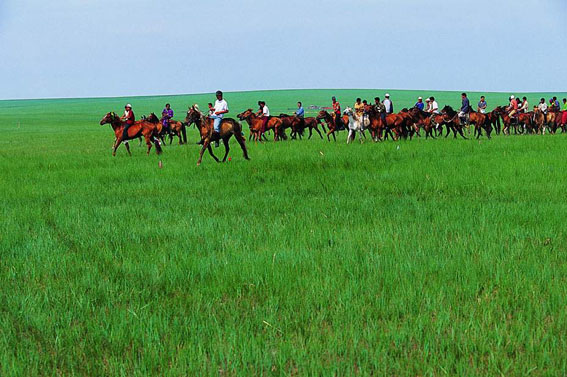 蒙古族在生產(chǎn)生活中與馬結(jié)下了不解之緣,被稱作“馬背上的民族”。從某種意義上說,蒙古族悠久燦爛的歷史文化也是在馬背上書寫鑄就的。呼倫貝爾草原,作為蒙古族等中國北方游牧民族成長的歷史搖籃,她見證與記錄了馬背民族從古至今的歷史足跡。騎馬暢游于呼倫貝爾草原,投身于草原博大的胸懷,在飽覽草原壯美秀麗的自然風光、品味回歸自然的親切感受的同時,不但能撫古追今重溫歷史,還可充分領(lǐng)略草原民族淳厚獨特的民俗文化,更能親身體驗現(xiàn)代牧歌式的游牧生活。