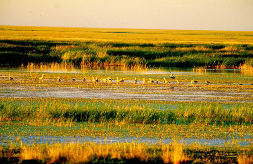 保護(hù)區(qū)是百鳥的樂園。保護(hù)區(qū)東南部豐富的水面和大片的沼澤濕地,造就了大面積的淺灘草原區(qū)和廣闊的深草區(qū)。幽幽千畝香蒲搖曳,茫茫萬頃蘆葦蕩漾,為眾多鳥類提供了充足便利的覓食條件,也為它們提供了不受驚擾的棲息繁衍場(chǎng)所。它們一對(duì)對(duì),一群群,時(shí)而飄然水面,時(shí)而云集藍(lán)天,構(gòu)成了一幅動(dòng)靜結(jié)合的壯美而幽雅的藍(lán)天碧水百鳥圖。每年春秋季節(jié)有成千上萬只水鳥過境停歇。保護(hù)區(qū)內(nèi)有鳥類228種,其中有國(guó)家一級(jí)保護(hù)鳥類大鴇、丹頂鶴、金雕等9種,國(guó)家二級(jí)保護(hù)鳥類36種。僅鶴類就有6種分布在保護(hù)區(qū)內(nèi),是我國(guó)鶴類分布最為集中的區(qū)域之一。