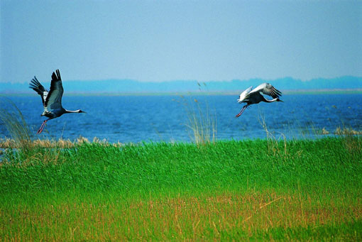 達里諾爾意為“像大海一樣寬闊美麗的湖”。天晴氣朗之時,湖面平靜如鏡,偶爾有微風拂過,湖水便輕輕地向周圍蕩漾開來,四周綠草如茵,給人無盡的遐思。湖周圍的鳥類資源非常豐富,作為濕地生態(tài)環(huán)境的指標動物鶴類就有白枕鶴、丹頂鶴、灰鶴、黑鶴4種。每年初春是來此地觀鳥的好季節(jié)。
