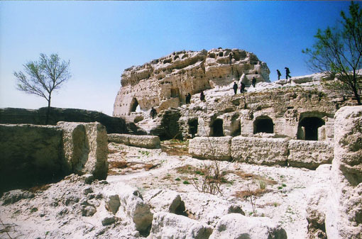 統(tǒng)萬城曾是1 500年前大夏國巍峨壯麗的都城,它的白金內(nèi)核一樣質(zhì)地堅(jiān)實(shí)的角樓,仍以八丈高的氣勢,在中國建筑史學(xué)上傲視一方,千年風(fēng)雨似乎只是將它洗得微微發(fā)白,當(dāng)?shù)厝硕冀兴鞍壮亲印薄@@過角樓,殘城就慘不忍睹了,瓦礫和流沙正日益吞噬著酈道元筆下的錦繡皇城。