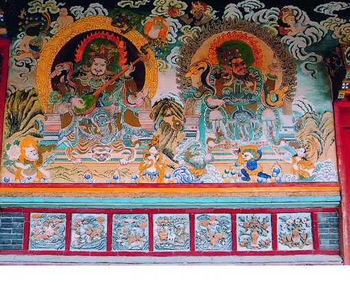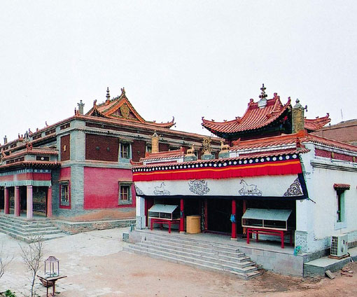 - 延福寺坐落在阿拉善盟巴彥浩特鎮(zhèn)王府街北側(cè),是阿拉善王爺?shù)募覐R。始建于乾隆二十五年(公元1760年),寺名為乾隆皇帝所賜,并用蒙、漢、滿、藏四種文字書寫。寺院建有大經(jīng)堂、菩薩殿、四大天王殿、藏經(jīng)樓、鐘鼓樓、如來殿、阿拉善神殿、藥師殿等大小殿堂28間 ,廳195間 。寺內(nèi)現(xiàn)存有一口鑄于清高宗乾隆五十五年(公元1790年)的大鐘,其鐘聲洪亮,每擊一下,整個巴彥浩特余音繚繞。此寺已成為內(nèi)蒙古西部名勝之一,被列為自治區(qū)級重點(diǎn)文物保護(hù)單位。
