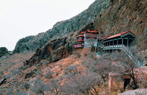 - 廣宗寺北幾公里處有一單獨聳立的山,有人說它從遠處看去似氈帽而謂之氈帽山,因嫌其不雅,改叫瞻卯山。平常叫“塔爾巴卓格”,藏文原意可解釋為“解脫閣”,曾有過一塊雕刻藏蒙滿漢文的金字匾額(殘塊仍存)。該山是十六羅漢尊者赴漢地時做過夏安居之地而遠近聞名的圣山。南面半山腰上有一天然的山洞,里面供奉吉祥天女。從洞口延伸出來的巨型巖石能發(fā)出清脆的聲音,據(jù)傳是羅漢用過的稚(集合僧伽的響器)。洞口外修有臺階和僧舍。其東側(cè)稍高處有人工鑿出的山洞,因洞內(nèi)有溫都爾葛根親自畫的金剛菩薩和其他眾多上師、本尊、護法像,故稱金剛菩薩洞(多爾色木宗)。山腳下曾有過經(jīng)堂、活佛居室、倉房、僧舍等,夏季舉行夏安居法會。在恢復建設瞻卯寺過程中,本寺弟子桑吉拉布坦做出過特殊貢獻。他修通了從南寺到瞻卯山的能走小型汽車的土路,又從南寺拆廟廢墟中撿出磚瓦、石料、木材,背到瞻卯山,修復了臺階、蓋起了僧房,在洞口安裝了門窗。有人說他是南寺的“愚公”,雖是戲稱,但也有幾分相似之處。