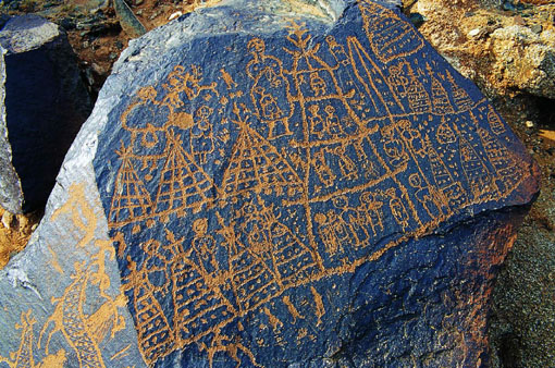 •  位于阿拉善右旗孟根布拉格蘇木境內(nèi)的曼德拉山中,距孟根布拉格蘇木西南約14公里。巖畫共6 000多幅,面積約18平方公里。據(jù)專家們初步考察,認為參加巖畫制作的有羌、月氏、匈奴、鮮卑、回紇、黨項、蒙古等北方少數(shù)民族。巖畫畫面多為狩獵、放牧、戰(zhàn)斗、神佛、日月星辰、寺廟建筑、舞蹈競技以及游樂等場面。