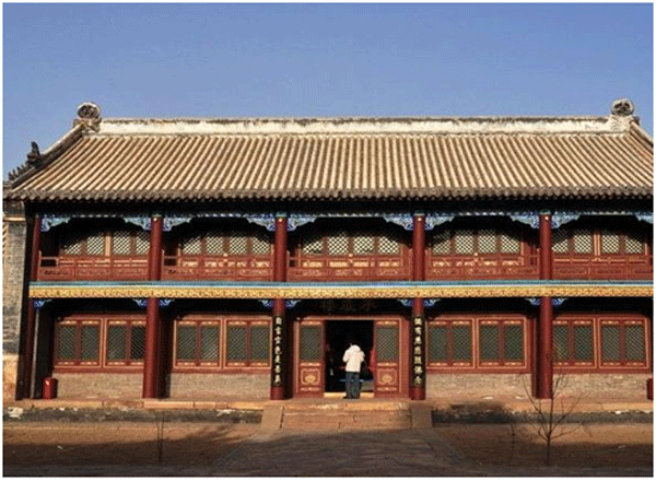喀喇沁親王府并不是孤立的建筑,它與周圍的住宅村落、喇嘛廟宇連在一起。它的西面,過八家村一里許,有以福會寺為中心的五座喇嘛廟(福會寺、極善生樂寺、咸應(yīng)寺、廣慧寺、延慶寺)。主體建筑廟堂、院落均為紅磚紅墻。過去,這里以寺廟群為中心,向兩旁各伸展一里,是三趟前后街的喇嘛住宅。最興盛時期,五寺喇嘛達(dá)到五百余人;從福會寺向西,經(jīng)西灣子、大西溝、上瓦房到銀匠營子,約十里,這一帶曾是王府官員和富人的住宅區(qū),當(dāng)時,這里的住宅建筑樣式均為前出廊檐后出廈、四梁八柱的青磚瓦房。從沁親王府建筑布局看,可歸納為三點:其一,建筑群體與自然環(huán)境有機(jī)地結(jié)合,相得益彰;其二,親王府建筑布列以中軸核心區(qū)段為主,東西兩路(跨院)為輔,中路以體現(xiàn)親王府權(quán)力等級而尤顯宏偉規(guī)整,而東西跨院為生活功能區(qū),建筑布局顯得十分靈活;其三,人造園林與建筑相結(jié)合,中路以參天蒼松為主,更顯建筑之肅穆,而東西跨院廣植奇花異草,玲瓏石與樹木相映,更有花園疊山理水,極盡造園之能事,體現(xiàn)出建造者獨具匠心的設(shè)計構(gòu)思與精巧布局。
