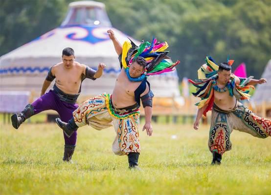 2017年8月31日,蒙古族搏克選手在那達(dá)慕上表演。當(dāng)日,2017年和林格爾“蒙草情”歡樂那達(dá)慕在呼和浩特市和林格爾縣舉行。本次那達(dá)慕歷時3天,將舉辦賽馬、摔跤、射箭、蒙古族服飾展演、非遺文化展示等活動,讓游客近距離感受蒙古族的草原文化魅力,樂享秋日時光。(責(zé)任編輯:石毅 丁根厚 攝)