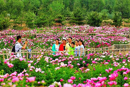 5月31日,游客正在觀賞芍藥花。今年,呼和浩特市和林格爾南山旅游區(qū)盛樂百亭園引進芍藥新品種120多個,近50萬株,“金帶圍”“楊妃出浴”“紅艷飛霜”“紫鳳朝陽”等名貴品種相繼落戶扎根,種植規(guī)模從最初的30多畝發(fā)展到目前的近550畝,從種植規(guī)模到種植數(shù)量,和林格爾的芍藥花都堪稱“華北第一”。(內(nèi)蒙古日報社融媒體記者 通拉嘎 攝影報道)