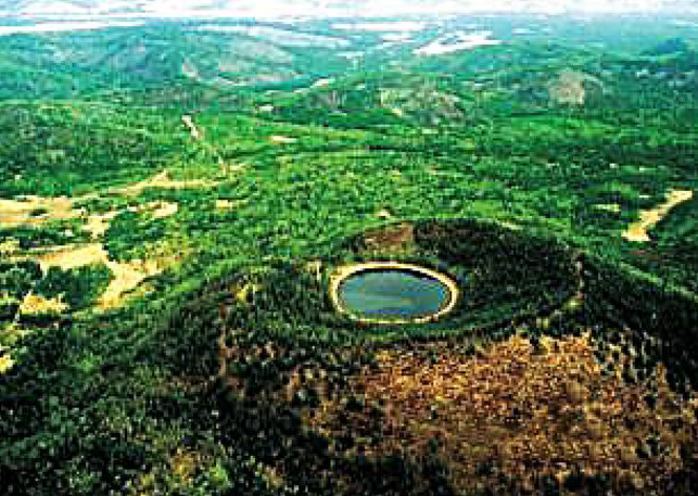走進(jìn)公園內(nèi),第一眼便能見(jiàn)到橢圓形的扎文火山口和掛在火山口周圍壯觀的碎石帶,這條碎石帶浩蕩綿延,就像瀑布一樣由火山口直瀉而下,當(dāng)?shù)厝朔Q其為“林海石瀑”。這條“林海石瀑”約是九萬(wàn)年前扎文火山爆發(fā)時(shí)噴發(fā)的火山熔巖所形成的奇觀,也是目前我國(guó)乃至世界發(fā)現(xiàn)的唯一的“石瀑”。