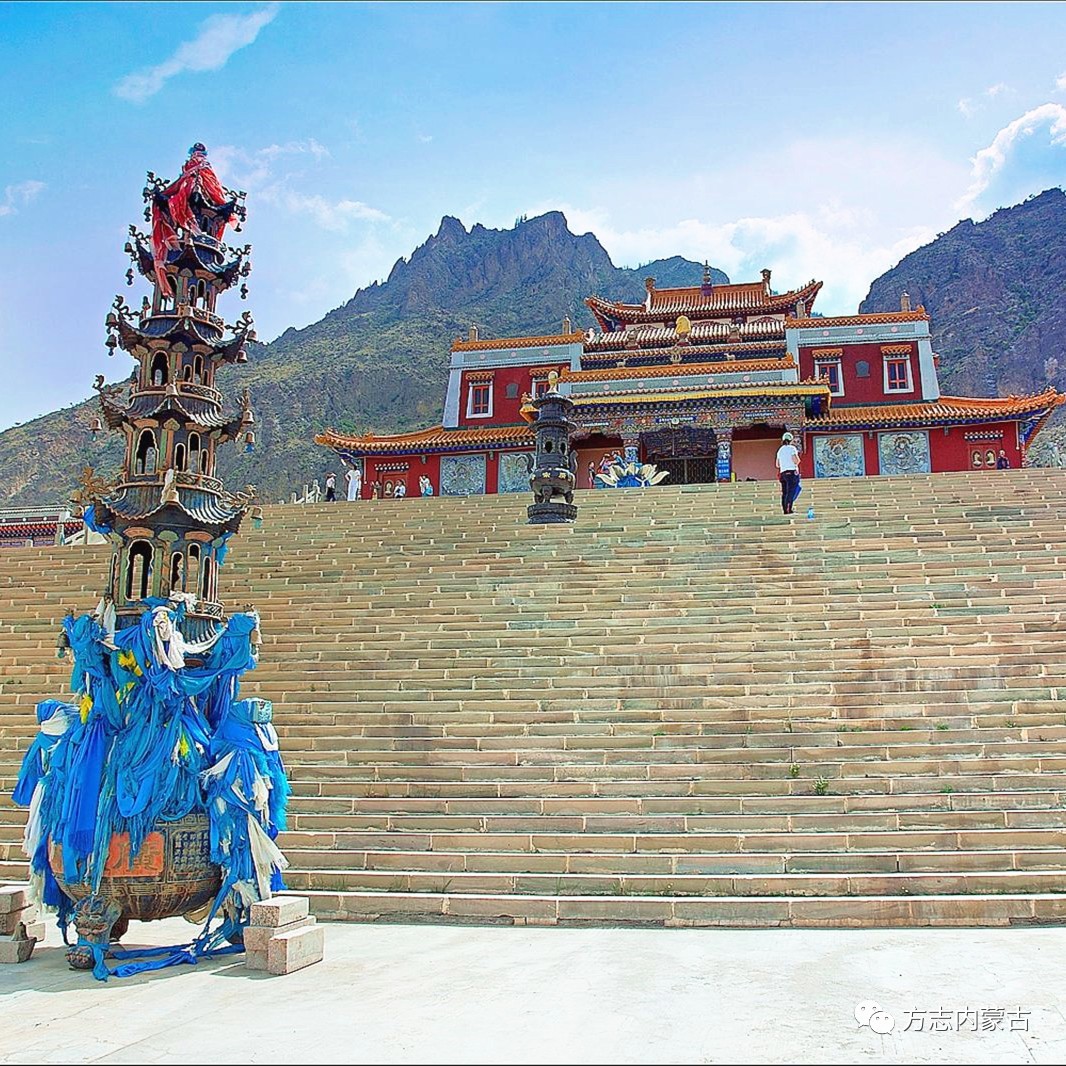 寺廟依山而建,山門兩側(cè)巖壁處雕塑有84尊彩繪石雕佛像。寺內(nèi)因供奉有六世達(dá)賴?yán)锪_桑仁欽蒼央嘉措真身靈塔、五佛冠、甘丹赤巴斗篷、唐代高僧玄奘的鈴釬、八世班禪所賜的銀壺等稀世文物而聞名于蒙藏宗教界。旅游區(qū)內(nèi)建有衛(wèi)拉特行營(yíng)、冬營(yíng)和丁香山莊等旅游設(shè)施。每年5月份舉辦阿拉善廣宗寺(南寺)丁香旅游節(jié),農(nóng)歷六月三日舉辦具有宗教色彩的祭祀巴音筍布爾敖包活動(dòng)。