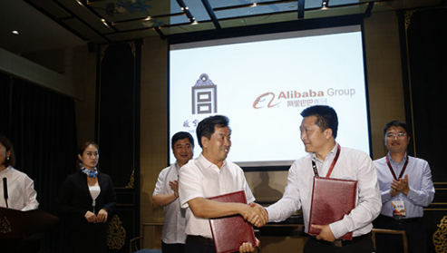 2016年6月,故宮博物院官方旗艦店上線阿里巴巴平臺。圖為故宮博物院常務(wù)副院長王亞民、阿里旅行總裁李少華代表雙方簽署協(xié)議