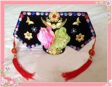 便帽:俗稱小帽或瓜皮帽。它以六瓣合縫,上銳下寬,底邊上有的鑲以一寸寬的小檐;在帽頂上要綴一個用絲絨結(jié)成的大疙瘩,俗稱“算盤結(jié)”,紅黑不等。為區(qū)別帽子的前后,需在帽檐的正中釘一“帽正”。帽正的質(zhì)地不一,富有者多用珍珠、玉石、翡翠、瑪瑙、珊瑚等為之;八旗平民則用燒藍(lán)、玻璃和小銀片等為之。清朝時,滿族老幼均喜戴便帽,冬春時一般以黑素緞為面,夏秋時則多用黑實地紗為面,而滿族農(nóng)家則多喜戴氈帽。據(jù)《嘯亭續(xù)錄》記載:滿族“士大夫燕居皆冠便帽。其制如暖帽而窄其檐,其上用紅片錦或石青色,緣以臥云如葵花式,頂用紅絨結(jié)頂,后垂紅縵尺余,無老少貴賤皆冠之。”這種帽子的式樣較多,有光頂、平頂、硬胎、軟胎之別。清朝時,該帽尤以綏遠(yuǎn)城滿族最為典型。20世紀(jì)60 年代,該帽者逐漸消失。