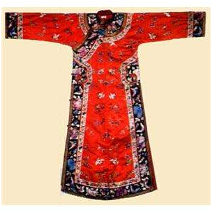 旗袍是滿族男女老幼、貧富貴賤都喜穿的服裝,滿語稱為“衣介”,因它是旗人的常服,故被世人稱為“旗袍”。它的樣式和結構較為簡單,圓口領、大襟、窄袖、左衽、束腰帶。有扣絆,衣擺四面開衩。以清代內蒙古綏遠城滿族為例:男子所穿之袍,長至腳面,下擺肥大,四面開衩,窄袖而束腰,其最大優(yōu)點就是適合于馬上的騎射。窄袖口上一般加有一個半圓形的袖頭,為了冬季御寒保護手背以利于射箭,故稱“箭袖”;又因其形似馬蹄,又俗稱為“馬蹄袖”。清朝中后期,箭袖失去了原有的射獵功能,而作為官吏“撣袖”施禮之用而流行。旗袍因季節(jié)不同,有皮、棉、單、夾、紗各種,因時而異。清朝以開衩之袍為貴,視其為官服和禮服;不開衩之袍為便服,一般為旗民的日常之服。穿著男子旗袍,很講究所戴佩飾,常見之物有荷包、解食刀、火鐮、扇套、匙、箸、牙簽等物品。旗袍的式樣也隨著社會的環(huán)境及發(fā)展而不斷變化。清代內蒙古滿族農家,因長期與蒙古族、漢族雜處混居,深受漢族大領大袖服飾之影響,加之窄袖長袍不適于農田耕作,于是窄袖多變成喇叭袖,四開衩演變?yōu)樽笥议_衩或不開衩,且以肥大為美。在清代內蒙古地區(qū),尤以綏遠城滿族男子的旗袍最為典型。