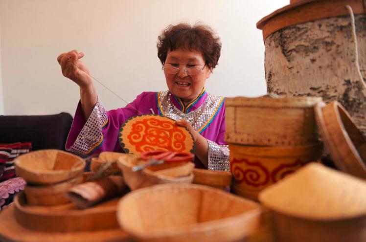 非物質(zhì)文化遺產(chǎn)白樺樹皮工藝品制作
