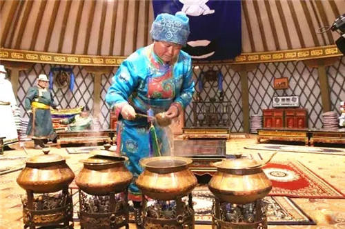 蒙古族十分注重并樂于人際交往,不管是熟人還是陌生人,見面都要相互行問候禮,近代習俗則相互交換鼻煙壺,詢問雨水、草場情況,談論牲畜膘情。蒙古地區(qū)的一些約定俗成的行為準則清楚地反映了這種熱心于交往的習俗。例如,一支駝隊旅行至某一地方,修整馱物,搭帳篷休息時,附近的牧民有義務為其提供茶水、燃料、毛繩等供給。當旅行者巧遇某一陌生人家剪羊毛或制毛氈時必須要說“愿您家的毛氈變得更加潔白和牢固”等祝福語,主人也要回應說“愿您的祝福永固長存”,然后用奶茶、食品招待這位客人。凡是來家做客的人必須要為其倒茶,熱情談論。蒙古族相信家里客人越多,家業(yè)越興隆。