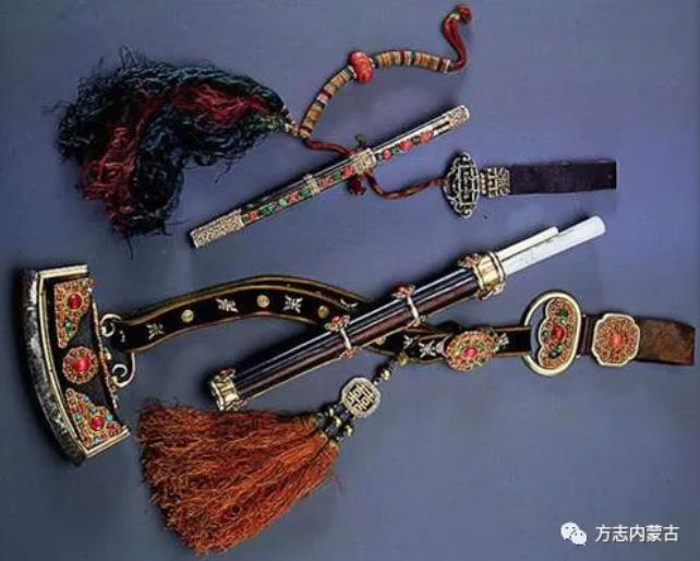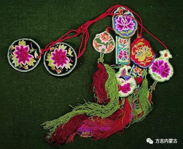 蒙古族不僅喜愛穿著鮮艷的蒙古袍,腰系寬厚的腰帶,頭戴棲鷹帽,腳蹬牛皮靴子,表現(xiàn)出極具個(gè)性的民族特點(diǎn)。除此之外,蒙古族男女在裝飾上也很有特點(diǎn)。蒙古族男子傳統(tǒng)裝飾物有褡褳、鼻煙壺、煙袋、煙荷包、火鐮、蒙古刀、手鐲、戒指、圖海等。這些飾物融藝術(shù)性、使用性、裝飾性、保質(zhì)價(jià)性、攜帶性于一體。褡褳是裝鼻煙壺和哈達(dá)的長方形小袋子,懸掛在男子腰帶左前側(cè)。鼻煙壺是蒙古族男子吸鼻煙及相互請安問候的禮儀工具。火鐮是火柴未進(jìn)入草原前蒙古族主要的取火工具。蒙古刀、銀碗、戒指等,也是蒙古族男子喜歡的飾物。