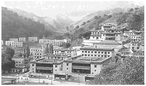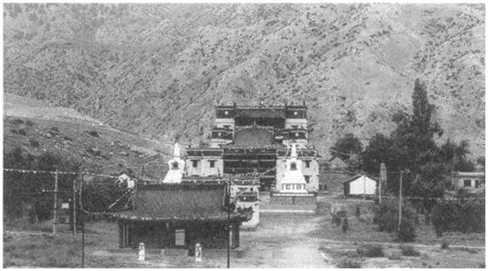 另外,還有郝拉銀殿和能乃殿,這兩個(gè)殿現(xiàn)在已不存在了。郝拉銀殿是專門為外地喇嘛來寺誦經(jīng)準(zhǔn)備的,殿分上下兩層,底層供如來佛、宗喀巴銅像,壁畫畫有十八羅漢、白度母和綠度母畫像。能乃殿為6間大的一層建筑,主供觀音菩薩4尺髙的銅像,墻無壁畫,殿外筑花攔墻。此殿在整個(gè)建筑中別具一格。