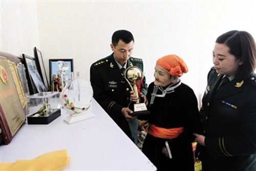 從都貴瑪搬到旗里住,四子王旗邊防大隊的官兵們就經(jīng)常來看望她,前幾年還聘請她當(dāng)了大隊的編外教導(dǎo)員。在四子王旗,都貴瑪有很多“陌生”的子女,人們尊敬她愛戴她,被她無私的母親般的情懷所感動,在杜爾伯特草原上,從不缺少這樣溫情的故事。