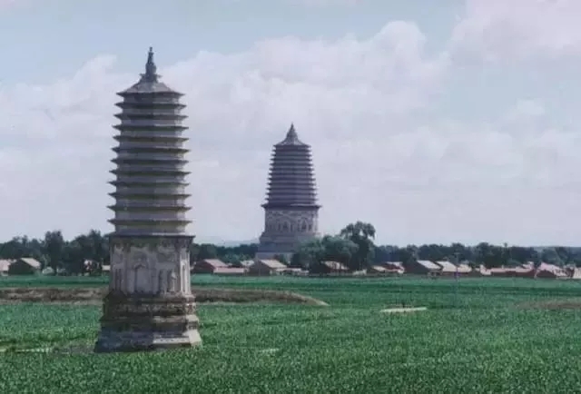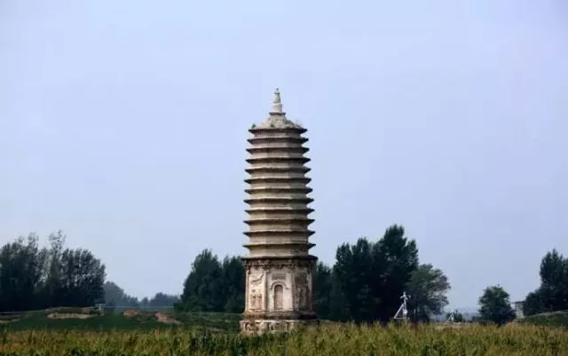 底座上為塔身。塔身一層?xùn)|、西、南、北四面正中均有磚砌拱形佛龕。龕內(nèi)佛像已全部脫落無存。其余四面設(shè)神龕,均為浮雕而成,龕內(nèi)各雕兩尊高1.66米的脅侍菩薩,菩薩立于蓮臺(tái)之上,人物形象生動(dòng)逼真。佛龕上方雕有飛天,其雕刻手法精湛,動(dòng)感強(qiáng)烈。塔身的轉(zhuǎn)角雕成圓柱形,再上為磚雕斗拱。二層以上均為密檐,每層除磚砌墻體,檐下均以四層疊澀磚墊托。塔剎為小塔式,南面雕有佛龕。剎頂有磚雕日、月、寶珠、火焰。