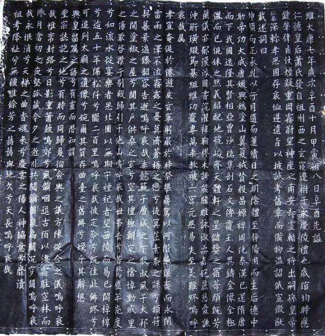 哀冊文,赤峰市巴林右旗索布日嘎遼代慶陵出土,漢白玉質,方形,邊長1.3米左右。遼制,遼代帝后死后,將遣葬日要舉行“遣奠”,其時將宣讀的最后一篇祭文刻于冊上埋入陵中,稱為“哀冊”。