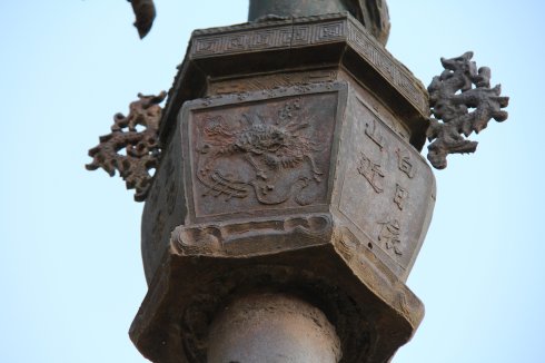 龍王廟里的一對(duì)蟠龍鑄鐵旗桿