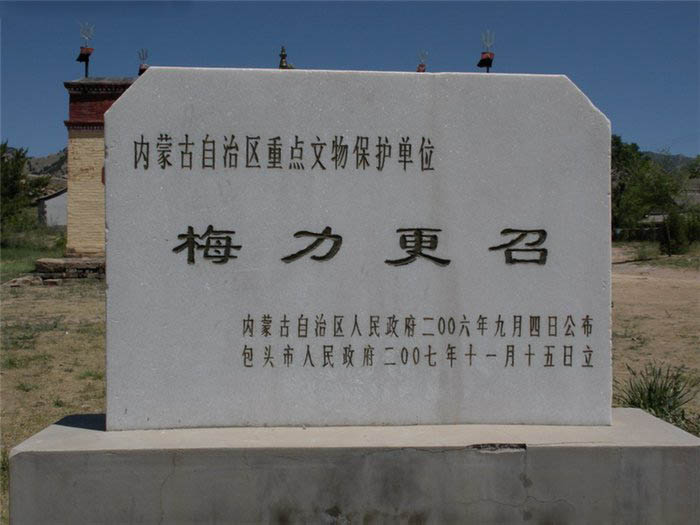 梅力更召位于內蒙古包頭市九原區(qū)阿嘎如泰蘇木哈業(yè)胡同鄉(xiāng)。該召始建于清康熙十六年(1677年),原為烏拉特西公旗旗廟。初名“梅力更”,蒙古語意為聰明智慧。清康熙四十一年(1702年),康熙皇帝賜名“廣法寺”。