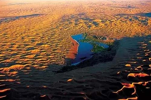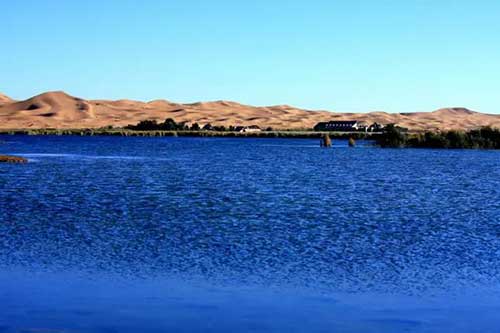 騰格里沙漠是中國第四大沙漠,也是現(xiàn)在流動速度最快、周邊人口密度最大的沙漠,是沙塵暴的主要發(fā)源地之一。月亮湖是騰格里腹地的純天然湖泊,也是一個完全處于原始狀態(tài)的沙漠綠洲。