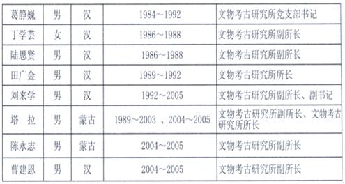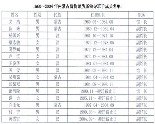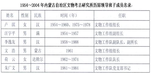 (說(shuō)明:本次統(tǒng)計(jì)后,塔拉任文化廳黨組成員,內(nèi)蒙古博物院院長(zhǎng);陳永志任內(nèi)蒙古文物考古研究所所長(zhǎng),吉平、張文平任副所長(zhǎng)。其后,曹建恩調(diào)任內(nèi)蒙古文物保護(hù)中心主任。)