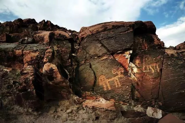已發(fā)現(xiàn)的巖畫中,內(nèi)容有牧羊人、狩獵人、北山羊、獵犬、馬、驢等圖案。刻繪方法是用石器和青銅器在巖石上敲鑿,并逐步加以磨制而成。巖畫的作者均為生活在這里的匈奴人,其時(shí)代上起青銅時(shí)代,下至戰(zhàn)國、秦漢時(shí)期,有些巖畫是秦始皇命大將蒙恬在此修筑長城以后,才逐漸刻繪的。