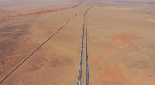 穿沙公路,于1998年修建。南起鄂爾多斯市杭錦旗錫尼鎮(zhèn),北至巴彥淖爾市烏拉山鎮(zhèn),全長(zhǎng)115公里,其中穿越大漠50公里,最高沙峰89.5米。