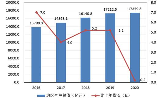 圖1 2016—2020年地區(qū)生產(chǎn)總值及其增長速度