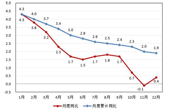 圖2 2020年居民消費價格月度漲跌幅度