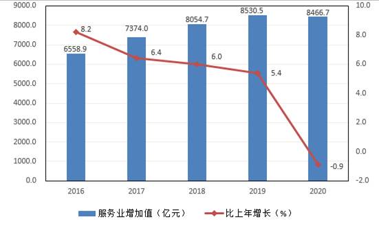 圖4 2016—2020年服務(wù)業(yè)增加值及其增長速度