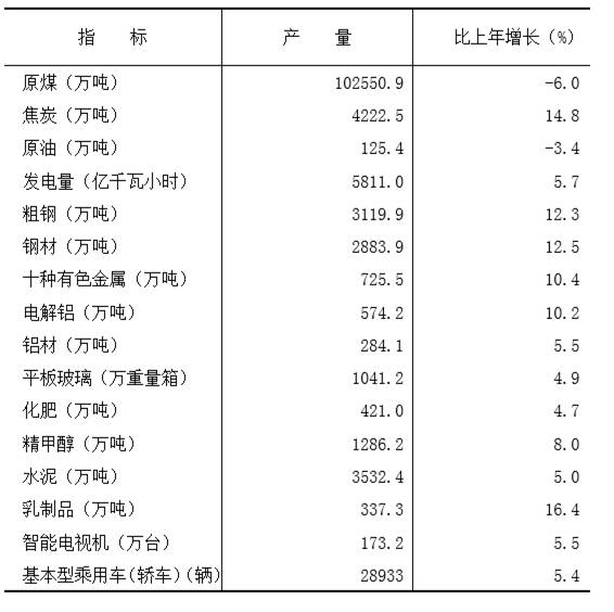 從主要工業(yè)產(chǎn)品產(chǎn)量看,全區(qū)原煤產(chǎn)量102550.9萬噸,比2019年下降6.0%;焦炭產(chǎn)量4222.5萬噸,增長14.8%;發(fā)電量5811.0億千瓦小時,增長5.7%。鋼材產(chǎn)量2883.9萬噸,增長12.5%;鋁材產(chǎn)量284.1萬噸,增長5.5%。