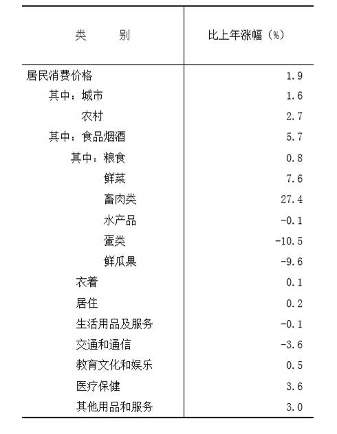 全年全區(qū)居民消費價格比2019年上漲1.9%。分城鄉(xiāng)看,城市上漲1.6%,農(nóng)村上漲2.7%。分類別看,食品煙酒類上漲5.7%,衣著類上漲0.1%,居住類上漲0.2%,生活用品及服務(wù)類下降0.1%,交通和通信類下降3.6%,教育文化和娛樂類上漲0.5%,醫(yī)療保健類上漲3.6%,其他用品和服務(wù)類上漲3.0%。從工業(yè)生產(chǎn)角度看,工業(yè)生產(chǎn)者出廠價格比2019年下降0.3%,工業(yè)生產(chǎn)者購進價格比2019年下降0.5%。農(nóng)產(chǎn)品生產(chǎn)者價格上漲3.2%。