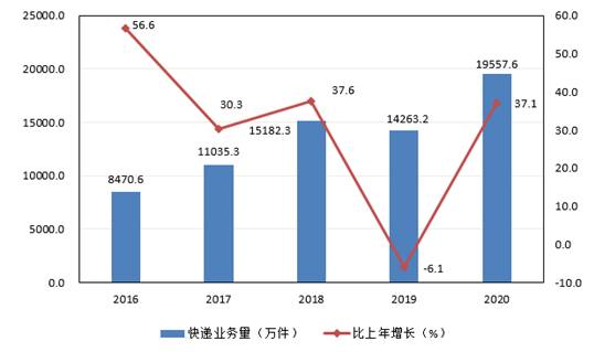 圖5 2016—2010年快遞業(yè)務(wù)量及其增長速度
