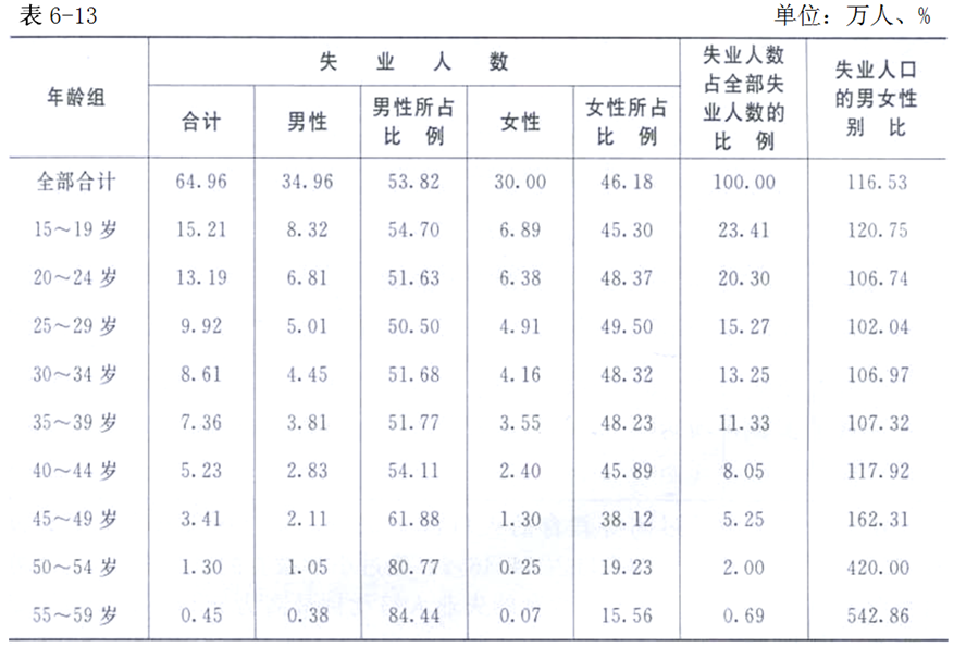 二、失業(yè)人口的年齡及性別構(gòu)成