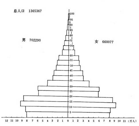 1982年全國(guó)第三次人口普查全盟人口年齡性別構(gòu)成塔型圖