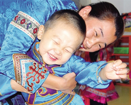 呼和浩特市蒙古族幼兒園的教師和孩子在一起