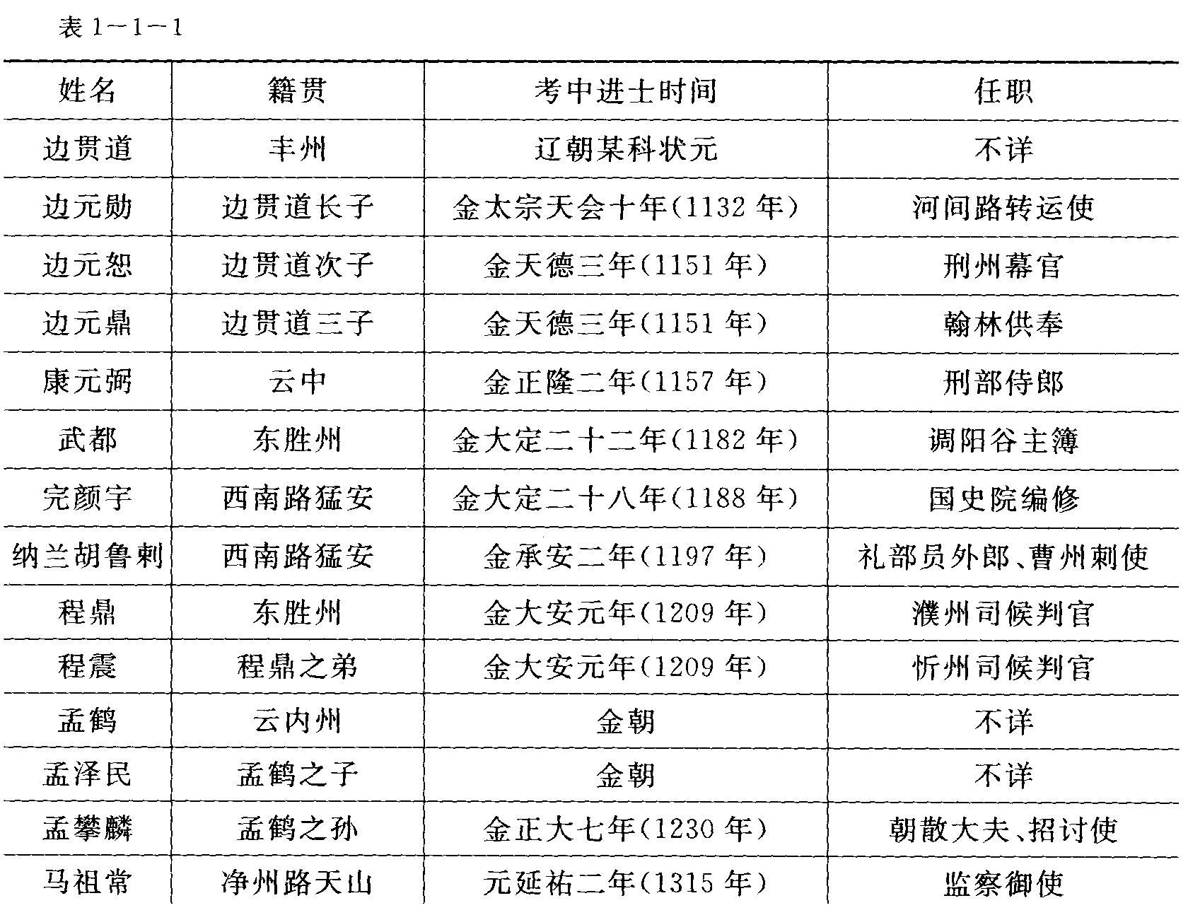 內(nèi)蒙古地區(qū)遼、金、元時(shí)期歲科進(jìn)士簡(jiǎn)表