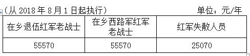 紅軍失散人員生活補(bǔ)助標(biāo)準(zhǔn)表