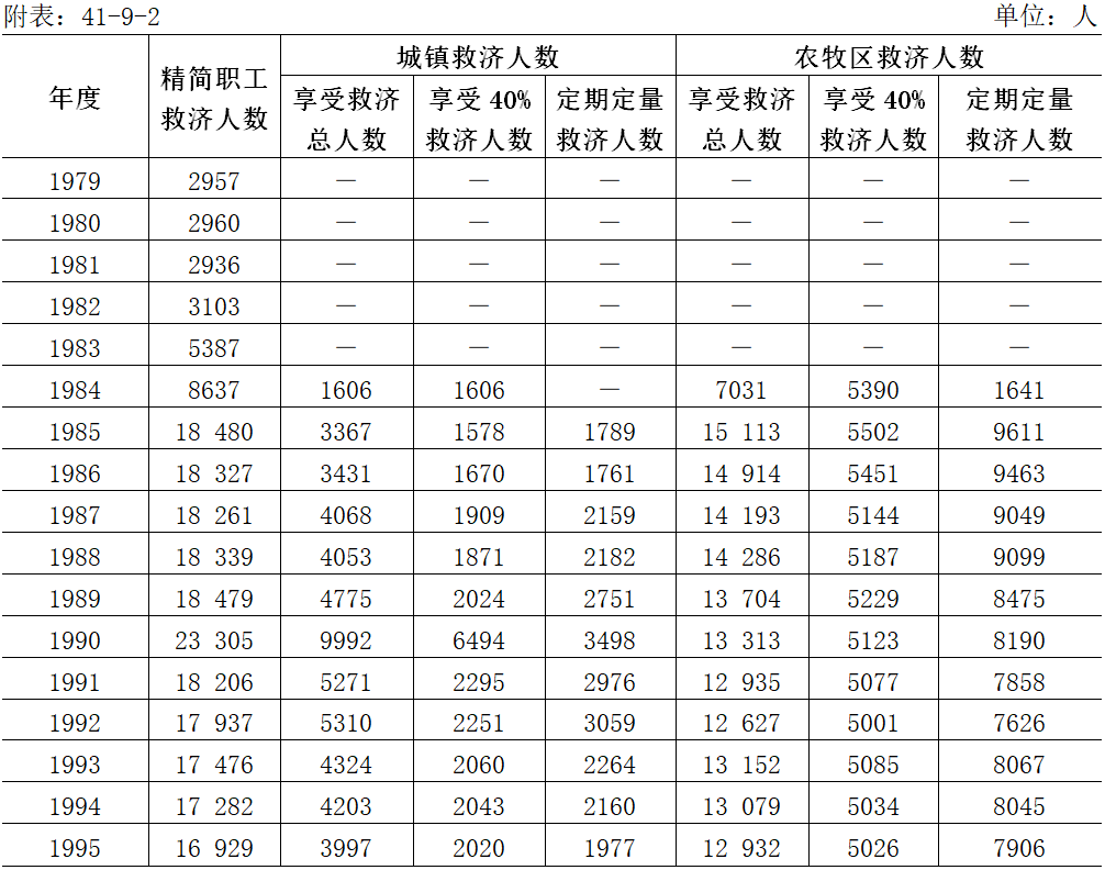 1979—1995年內(nèi)蒙古自治區(qū)精簡(jiǎn)退職老職工救濟(jì)表