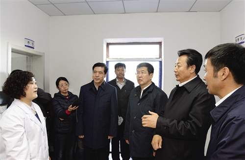10月9日,自治區(qū)黨委書記王君、自治區(qū)主席巴特爾率領自治區(qū)巡回觀摩檢查組來到包頭市九原區(qū)哈業(yè)胡同鎮(zhèn)烏蘭計一村標準化衛(wèi)生院,了解衛(wèi)生院建設和村民就診情況。 記者 袁永紅 攝