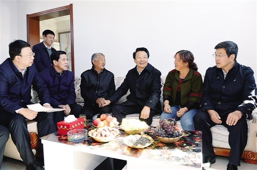 10月10日,自治區(qū)黨委書記王君、自治區(qū)主席巴特爾率領自治區(qū)巡回觀摩檢查組來到包頭市土右旗明沙淖鄉(xiāng)賀成泉村,入戶了解“十個全覆蓋”給村民生產(chǎn)生活帶來的巨大變化。 記者 袁永紅 攝