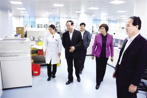 自治區(qū)政協(xié)副主席楊成旺(左二)帶領調研組在興安盟人民醫(yī)院進行專題調研。