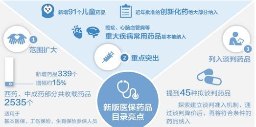 為何要制定新版藥品目錄?人力資源和社會保障部醫(yī)療保險司司長陳金甫介紹說,國家基本醫(yī)療保險、工傷保險和生育保險藥品目錄是醫(yī)療、工傷、生育等社會保險的基本政策標準和重要保障措施。基本醫(yī)療保險制度建立以來,國家分別于2000年、2004年、2009年調(diào)整發(fā)布了3版藥品目錄。現(xiàn)在執(zhí)行的目錄是2009年制定的,共收載藥品2196種,其中西藥1164種,中成藥1032種,涵蓋了多數(shù)臨床常用藥品。但是,藥品目錄長期未調(diào)整,也導(dǎo)致參保人員目錄外藥品費用負擔較重、與臨床用藥需求脫節(jié)、創(chuàng)新藥品無法進入目錄等一系列問題出現(xiàn),迫切要求調(diào)整發(fā)布新版藥品目錄。