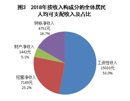 2018年按收入構(gòu)成分的全體居民均可支配收入及占比