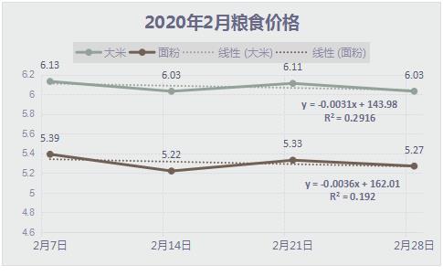 受春節(jié)節(jié)日效應(yīng)和新冠肺炎疫情雙重影響,2月份糧油價格均呈現(xiàn)下降趨勢,其中大米價格為6.06元/公斤,環(huán)比下降3.19%,同比下降7.2%,面粉價格為5.36元/公斤,環(huán)比下降2.72%,同比下降4.29%,食用油平均價格為16.23元/升,環(huán)比下降1.76%,同比上漲4.71%。
