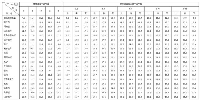 表1-2-1內(nèi)蒙古自治區(qū)氣溫年變化表(夏季)