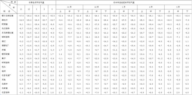 表1-2-1續(xù)內(nèi)蒙古自治區(qū)氣溫年變化表(冬季)
