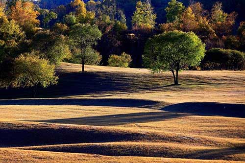 湖山真意景區(qū):是森林公園的景觀核心區(qū)域。優(yōu)美的天然疏林草地景觀氣魄宏大。主要景點有草原水庫——沿穿越草場的河流建壩,形成較大的草原湖泊,成為景區(qū)的核心。野果園——建設在砬沿子溝營林區(qū),總面積2000平方公里。林場區(qū)域內(nèi)特有的天然野果樹山梨、山槐、稠李、山丁子、山剌梅、野山楂等樹種,展示草原豐富多彩的景觀。樺木林——天然次生樺木林,長勢旺盛,是樺木溝林場樺木林景觀的典型體現(xiàn)。